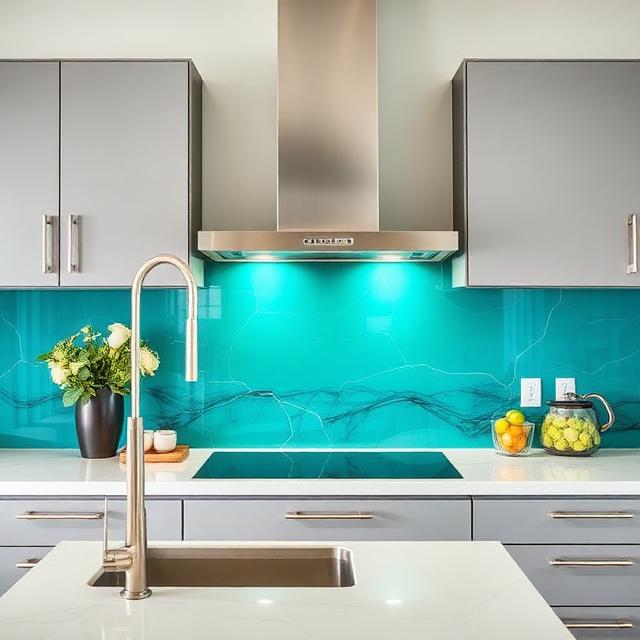 Update cabinetry and built-ins with painted glass panels that add depth and modern style.